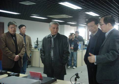 丁仲礼副院长一行参观了嘉兴工程中心水声技术、医疗声学、新媒体电声技术等方面的最新科研与产业化成果。在水声学成果展台前,丁院长详细听取了冯海泓主任关于水下定位声纳、声信标、应答释放器和图像声纳等水声设备的用途、指标和技术水平等情况,饶有兴趣的询问了这些产品在民用方面的市场情况,肯定了未来海洋资源开发会有更广泛的需求。在医疗声学研究成果展台前,冯海泓主任向丁院长介绍了来自美国的合作专家张朝英博士,详细阐述了数字助听器产品的联合开发模式和最新进展情况。丁院长对高性能、低价格的助听器在中国的广阔市场前景表示乐观,并希望这一产品能尽早上市。在电声产品展台前,丁院长观看了数字声级计、指向性扬声器以及电声检测仪演示,对设备功能实现、使用和长三角地区电声企业情况进行了询问,最后对声学所在电声企业集群地区开展技术转移转化工作表示赞许。