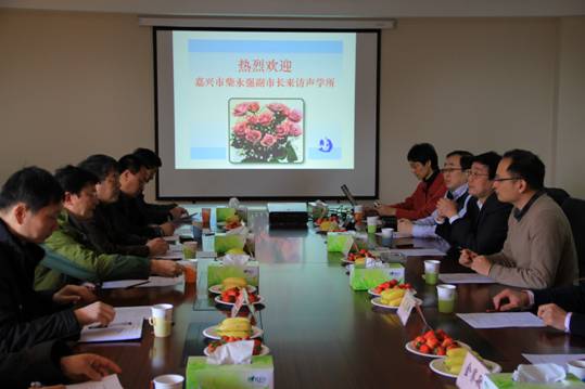 2012年3月6日,嘉兴市人民政府柴永强副市长率市科技局邢海华局长等一行在浙江中科院应用技术研究院陈秋荣院长陪同下来声学所就项目合作和成果转化工作进行了考察交流,王小民所长、副所长李风华及科技处相关人员与来宾进行了座谈交流。