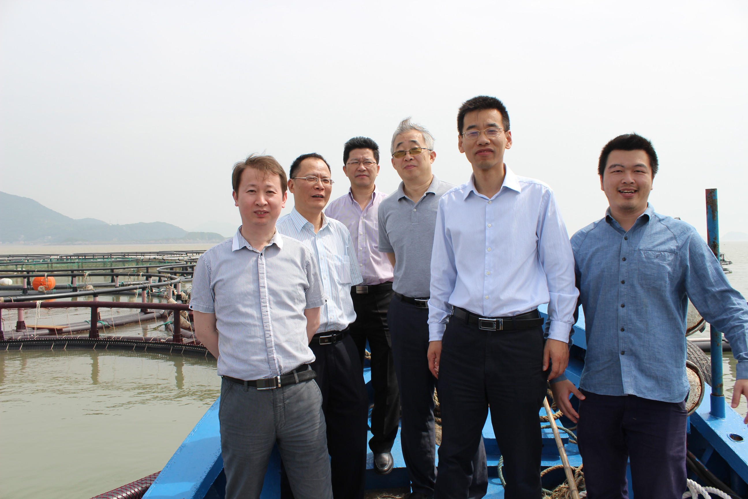 会后,中科院声学所东海站调研组一行前往舟山朱家尖参观了舟山海洋科技有限公司深水网箱标准化养殖推广示范基地。