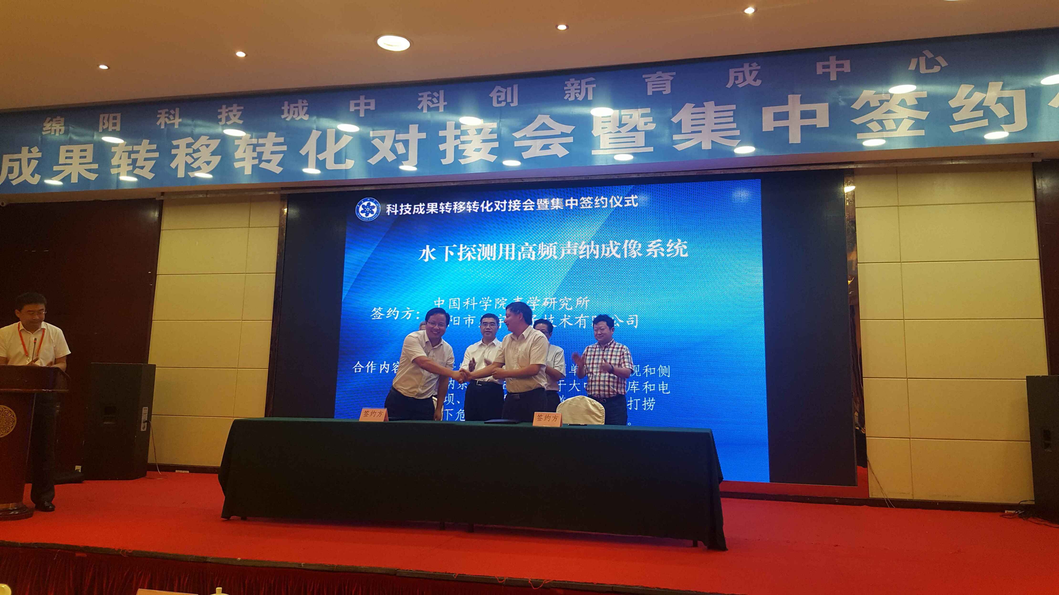 科博会期间,声学所与绵阳星宇电子技术有限公司前期谈签的 “水下探测用高频声呐成像系统”项目在科技成果转移转化对接会上参加了集中签字仪式。