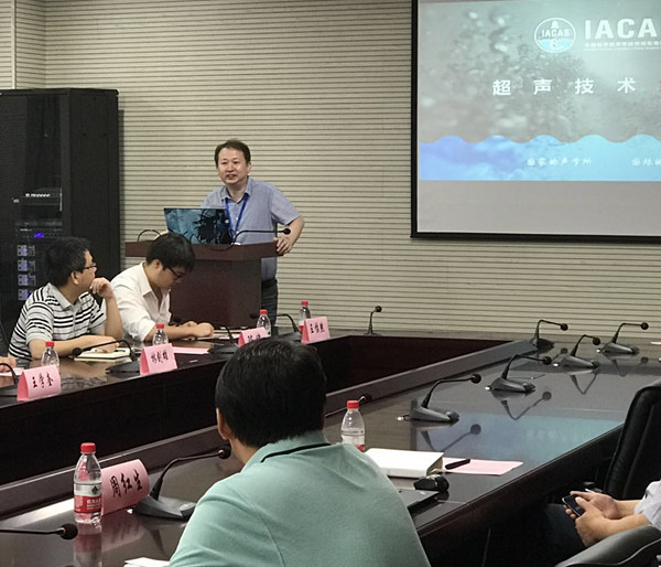 张伟才代表东海站对奉贤企业代表团一行的到来表示热烈的欢迎,同时,结合东海站成果展厅,着重介绍了东海站的历史沿革、研究方向及取得的成果。随后,东海站工业超声研究室周红生主任为作了关于“超声波技术成果综述”、“超声波在电力行业的应用”的主题报告,为参会企业展示了超声技术在国民经济领域最新的应用,对此,企业家们就技术瓶颈及困惑与东海站进行了深入交流。