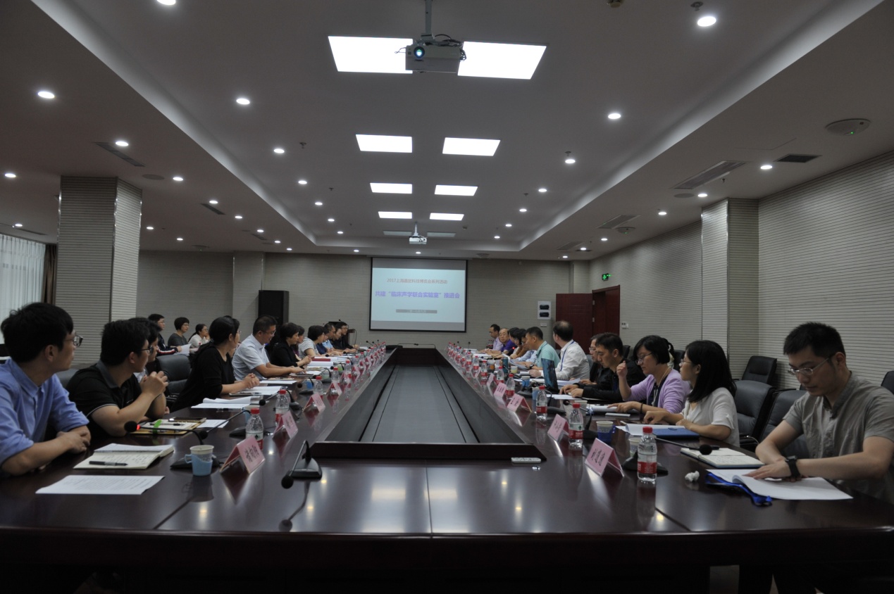 嘉定区中心医院科研科科长常庆对双方前期沟通情况进行了简要介绍。东海站仿生耳实验室主任冯海泓、超声工业研究室主任周红生就共建“临床声学联合实验室”硬件平台、双方联合科研项目、联合培养人才等方面向与会代表作了详细汇报。