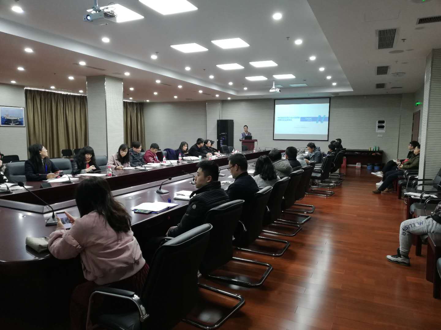 诸向阳汇报了东海研究站2018年度院地合作工作情况,并简要介绍了下一步科技成果转化工作计划及主要思考。金赛敏以“科技成果转移转化制度宣贯及案例分享”为主题,分别从制度编制依据、制度主要内容、制度落实情况等三方面进行了详细的介绍,分享了声学所目前的“1+1”模式实际案例,让与会人员受益匪浅。