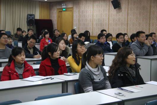 高文斌从“念书多少年,念书为了什么”这样一个问题出发,引起大家的思考。之后从在读研究生的角度分析这个问题,在座的研究生攻读硕士、博士学位,读书近18年,最原始的想法都是毕业后找一个好工作,能够稳定幸福的生活。高文斌从硕士、博士学位本身出发,从科研事业出发,分析了工作薪水与知识水平不挂钩,知识到应用产出的各种环节,指出高学历只参与其中部分环节。高文斌随后分析了当前大的社会环境,指出广大研究生应该认识到当前环境存在的问题是任何一个发达国家都会经历的过程,每一代人都有这一代人的责任。面对这样的环境,研究生应该做好心理准备,充实提高自身,来应对即将到来的挑战?高文斌从专业能力、身体能力和心理能力三个方面进行剖析,指出用人单位在选择的时候是考量一个人的综合能力,研究生在注重专业能力培养的同时也要注意身体和心理能力和培养。高文斌分析了心理的内部与外部两个方面,表示人的发展,要体育、智育、心育多维发展,研究生在平时学习生活中应注重自我调适,养成个人的行为方式。