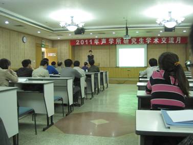 由声学所研究生部组织,研究生会协办的“2011年声学所研究生学术交流月”经过前期的准备和宣传工作,于4月25号(周一)在DSP大楼多功能厅拉开序幕。所长助理、语言声学与内容理解重点实验室主任颜永红老师发表讲话,并预祝本次学术交流活动取得圆满成功。