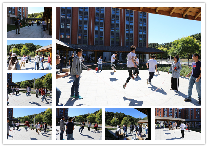 破冰环节结束后,游戏互动环节正式开始,研究生会精心准备了6个丰富多彩的游戏,有跳大绳,保龄球,你划我猜,踢毽子,传呼啦圈和听数抱团游戏,以及临时娱乐的呼啦圈套圈游戏。同学们从开始的生涩到后面的默契十足,每组队员都在欢声中熟悉队友。尤其是在你划我猜游戏中,各组同学表演有默契,有搞笑,有脑洞。