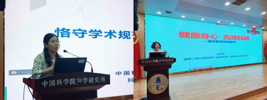 国家二级心理咨询师张彦秋作了《健康身心 高效科研》的心理健康专题讲座。她从了解关爱自我、调控适应环境、评估规划生涯等方面介绍了如何正确认识心理健康、学会克服压力,并高效从事科研学习工作,从而为创造美好人生奠定基础。