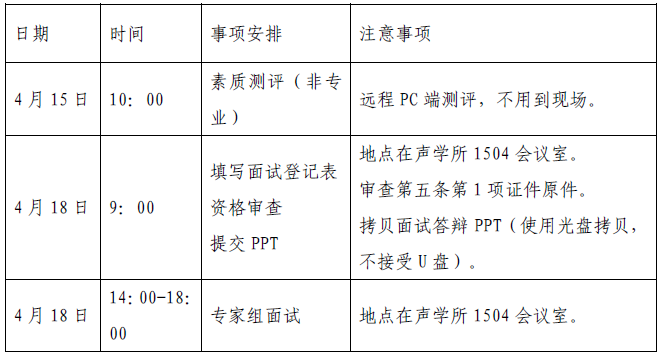 根据国科大和声学所博士招生相关管理规定,声学所普通招考博士研究生面试通知如下: